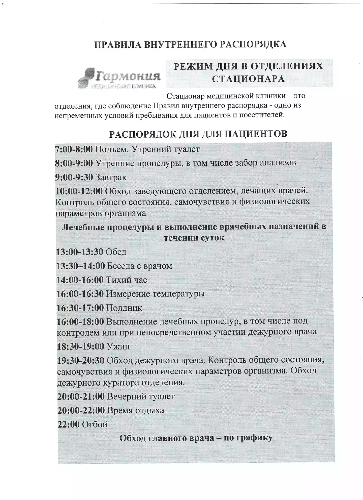 Правила внутреннего распорядка для пациентов